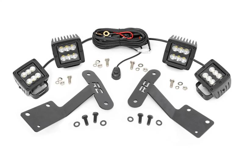 Buy this LED Lower Windshield Ditch Kit Rough Country 70866 2 in. - IP67 Waterproof Rating - Aluminum - Blacks Series - Spot And Flood Pattern Combo here at SVCustoms.com an authorized Rough Country Exterior LED Kit dealer and distributor.