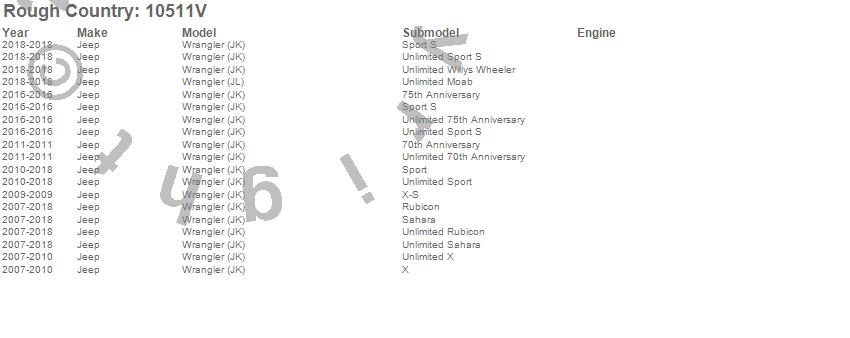 Brand: Rough CountryPart Number: 10511VFender Flare Type: Set - Front and Rear - Vertex ShocksUPC: 843030149116