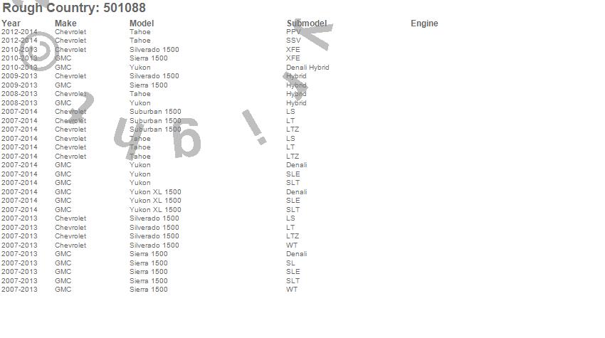 Below is an abbreviated list of applications for the Lifted N3 Struts.Sierra 1500, Silverado 1500, Suburban 1500, Tahoe, Yukon, Yukon XL 1500, Chevrolet, GMC, 2014, 2013, 2012, 2011, 2010, 2009, 2008, 2007