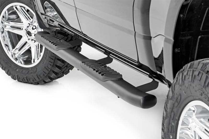 Buy this Oval Nerf Step Bar Rough Country 21004 4.5 in. - Black Powder Coat - Aluminum here at SVCustoms.com an authorized Rough Country Nerf/Step Bar dealer and distributor.