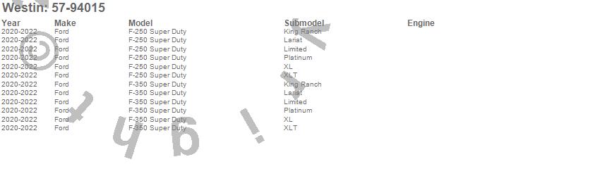 Brand: WestinPart Number: 57-94015Grille Guard Type: Black - SteelUPC: 707742100240