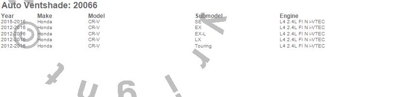 Below is an abbreviated list of applications for the Carflector Stone/Bug Deflector.CR-V, Honda, 2016, 2015, 2014, 2013, 2012