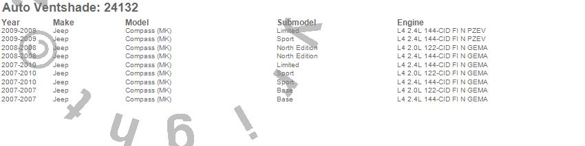 Below is an abbreviated list of applications for the Bugflector II Stone/Bug Deflector.Compass, Jeep, 2010, 2009, 2008, 2007
