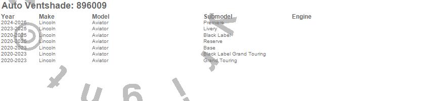 Below is an abbreviated list of applications for the Ventvisor Low Profile Deflector 6 pc..Aviator, Lincoln, 2025, 2024, 2023, 2022, 2021, 2020