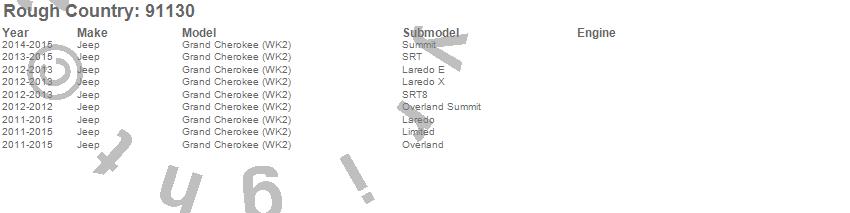 Below is an abbreviated list of applications for the Coil Spring Kit.Grand Cherokee (WK2), Jeep, 2015, 2014, 2013, 2012, 2011