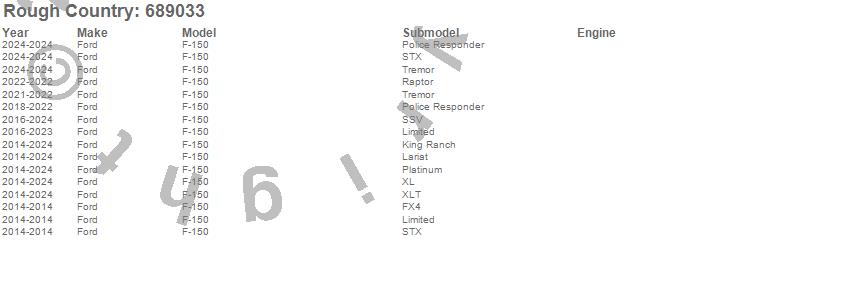 Brand: Rough CountryPart Number: 689033Coil Over Shock Absorber Type: Front - 3 in. LiftUPC: 843030199371