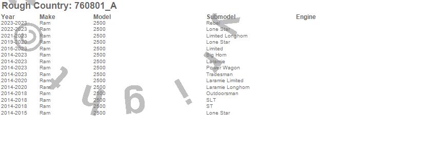 Brand: Rough CountryPart Number: 760801_AShock Absorber Type: 4.5-6 in. Lift - Rear - Pair - Extended Length 27.52 in. - Collapsed Length 16.34 in.UPC: 843030102333