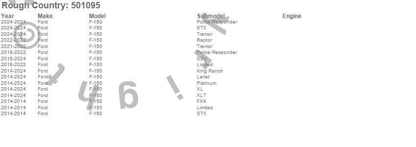 Brand: Rough CountryPart Number: 501095Suspension Strut Assembly Type: Front - Replacement - Pair - Extended Length 21.96 in. - Collapsed Length 16.10 in.UPC: 843030196202