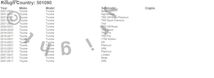 Brand: Rough CountryPart Number: 501090Suspension Strut Assembly Type: 2 in. Lift - LoadedUPC: 843030195526
