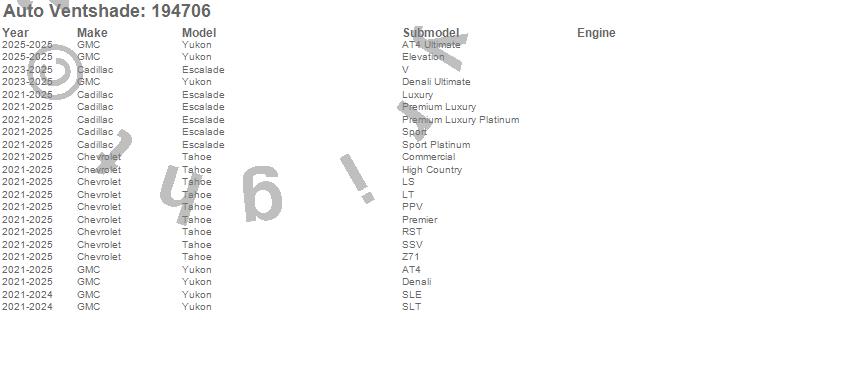 Below is an abbreviated list of applications for the Ventvisor In-Channel Deflector 4 pc..Escalade, Tahoe, Yukon, Cadillac, Chevrolet, GMC, 2026, 2025, 2024, 2023, 2022, 2021