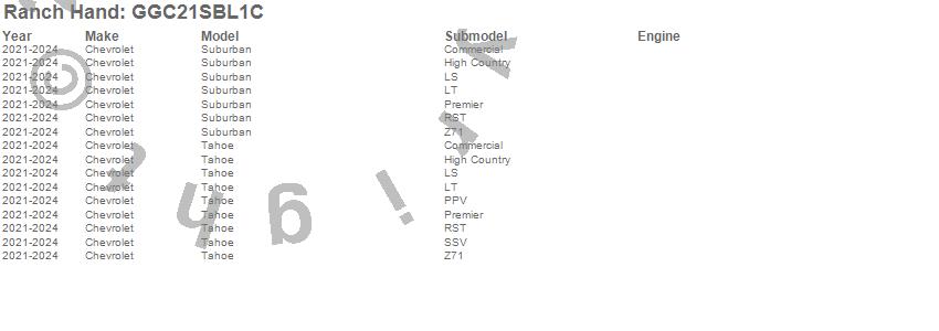Below is an abbreviated list of applications for the Legend Series Grille Guard.Suburban, Tahoe, Chevrolet, 2024, 2023, 2022, 2021