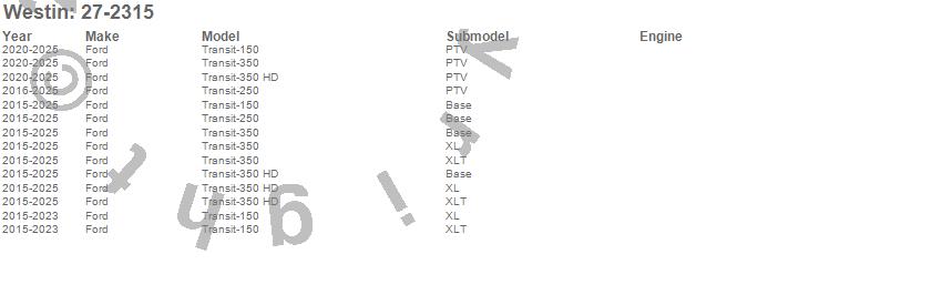 Below is an abbreviated list of applications for the Running Board Mount Kit.Transit-150, Transit-250, Transit-350, Transit-350 HD, Ford, 2025, 2024, 2023, 2022, 2021, 2020, 2019, 2018, 2017, 2016, 2015