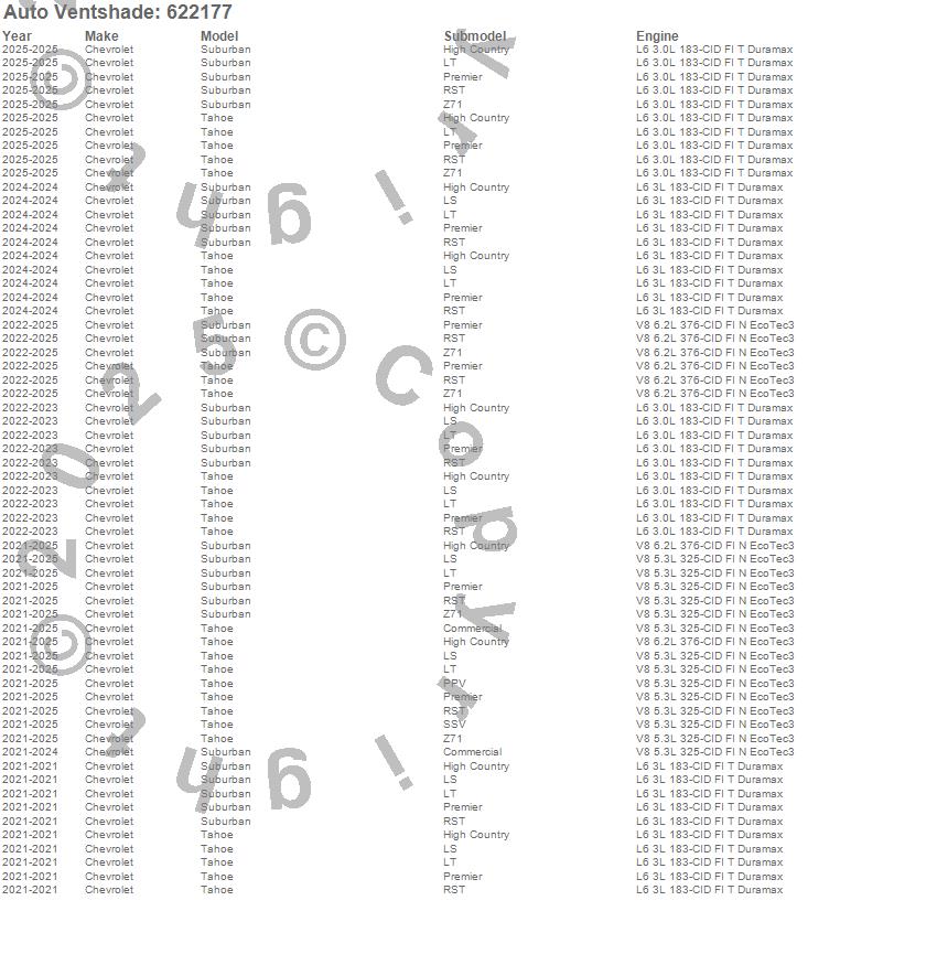 Below is an abbreviated list of applications for the Aeroskin Chrome Hood Protector.Suburban, Tahoe, Chevrolet, 2026, 2025, 2024, 2023, 2022, 2021