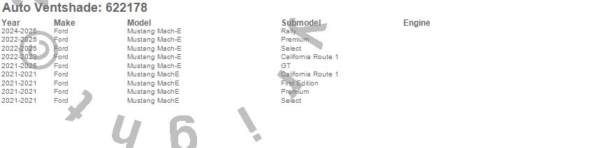Below is an abbreviated list of applications for the Aeroskin Chrome Hood Protector.Mustang Mach-E, Mustang MachE, Ford, 2025, 2024, 2023, 2022, 2021