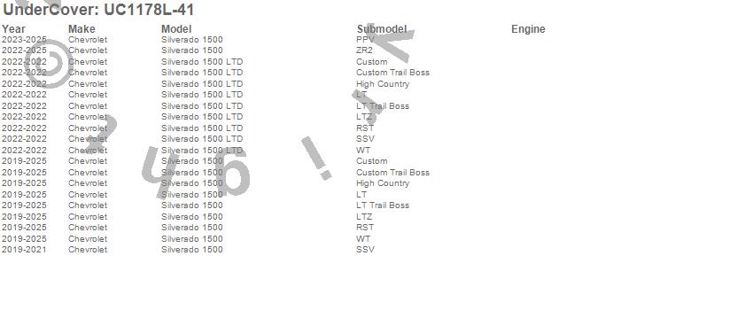 Below is an abbreviated list of applications for the Elite LX Tonneau Cover.Silverado 1500, Silverado 1500 LTD, Chevrolet, 2026, 2025, 2024, 2023, 2022, 2021, 2020, 2019