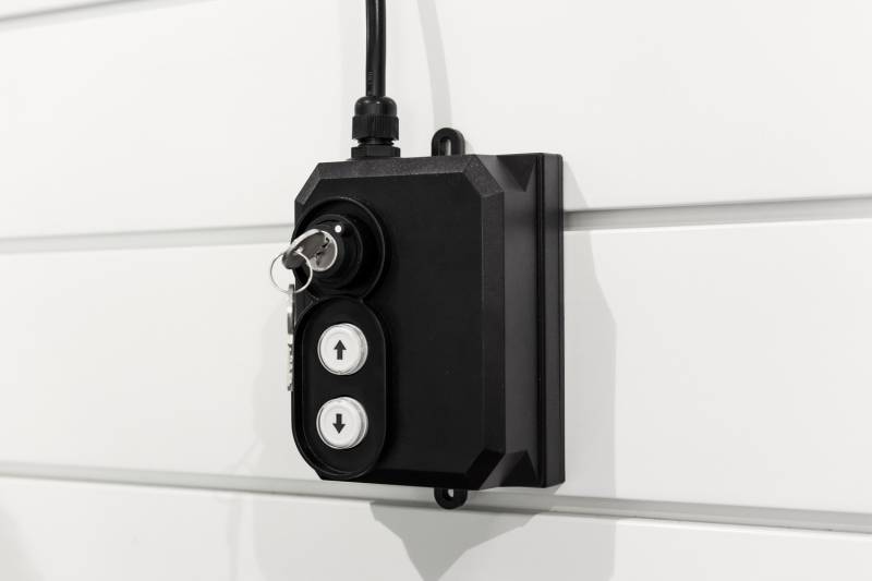 Buy this HOSS Storage Hardtop Hoist Bestop 42820-01 220 lb. Capacity - 120 Volt Power - Wall Mount Controller w/15 ft. Cord And Key Lock Switch here at SVCustoms.com an authorized Bestop Top-Hard Hoist dealer and distributor.