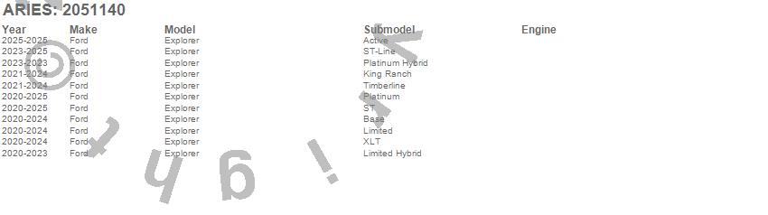 Below is an abbreviated list of applications for the AeroTread Mounting Brackets.Explorer, Ford, 2026, 2025, 2024, 2023, 2022, 2021, 2020