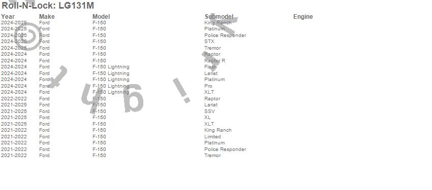 Below is an abbreviated list of applications for the Roll-N-Lock M-Series Truck Bed Cover.F-150, F-150 Lightning, Ford, 2025, 2024, 2023, 2022, 2021