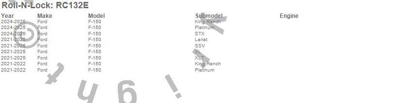Below is an abbreviated list of applications for the Roll-N-Lock E-Series Tonneau Cover.F-150, Ford, 2025, 2024, 2023, 2022, 2021