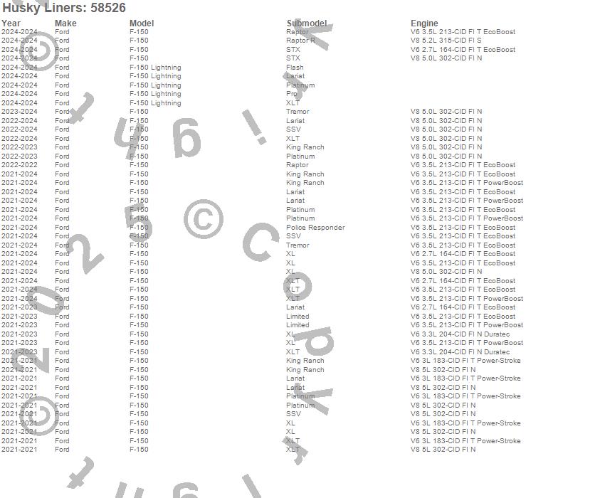 Below is an abbreviated list of applications for the Custom Molded Mud Guards.F-150, F-150 Lightning, Ford, 2024, 2023, 2022, 2021