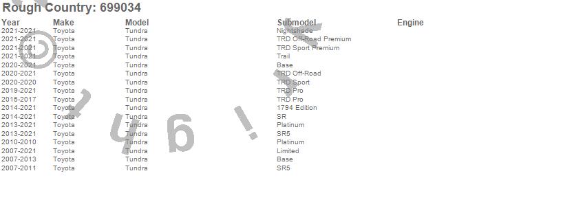 Brand: Rough CountryPart Number: 699034Coil Over Shock Absorber Type: For 3.5 in. LiftsUPC: 843030105464