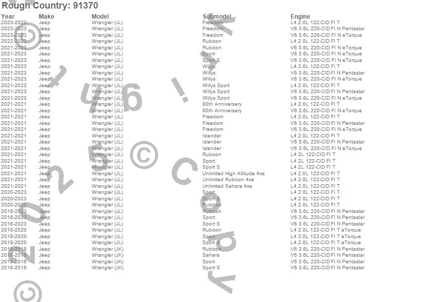 Below is an abbreviated list of applications for the Suspension Lift Kit w/V2 Shocks.Wrangler (JK), Wrangler (JL), Jeep, 2023, 2022, 2021, 2020, 2019, 2018