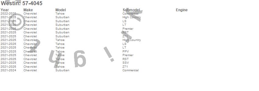 Brand: WestinPart Number: 57-4045Grille Guard Type: BlackUPC: 707742105962