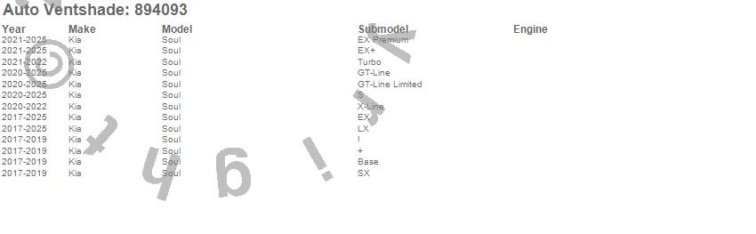Below is an abbreviated list of applications for the Ventvisor Low Profile Deflector 4 pc..Soul, Kia, 2025, 2024, 2023, 2022, 2021, 2020, 2019, 2018, 2017