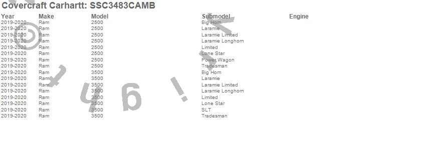 Below is an abbreviated list of applications for the Covercraft Carhartt SeatSaver.2500, 3500, Ram, 2021, 2020, 2019