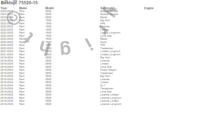 Below is an abbreviated list of applications for the TrekStep Rear Mount Step.1500, 2500, 3500, Ram, 2024, 2023, 2022, 2021, 2020, 2019