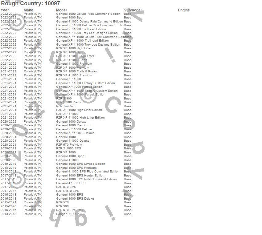 Below is an abbreviated list of applications for the Wheel Spacer Adapter.General 1000, General 1000 Deluxe, General 1000 Deluxe Ride Command Edition, General 1000 EPS, General 1000 EPS Deluxe, General 1000 EPS Hunter Edition, General 1000 EPS Limited Edition, General 1000 EPS Premium, General 1000 EPS Ride Command Edition, General 1000 Premium, General 1000 Sport, General 4 1000, General 4 1000 Deluxe, General 4 1000 Deluxe Ride Command Edition, General 4 1000 EPS, General 4 1000 EPS Ride Command Edition, General 4 1000 Premium, General XP 1000, General XP 1000 Deluxe, General XP 1000 Deluxe Ride Command Edition