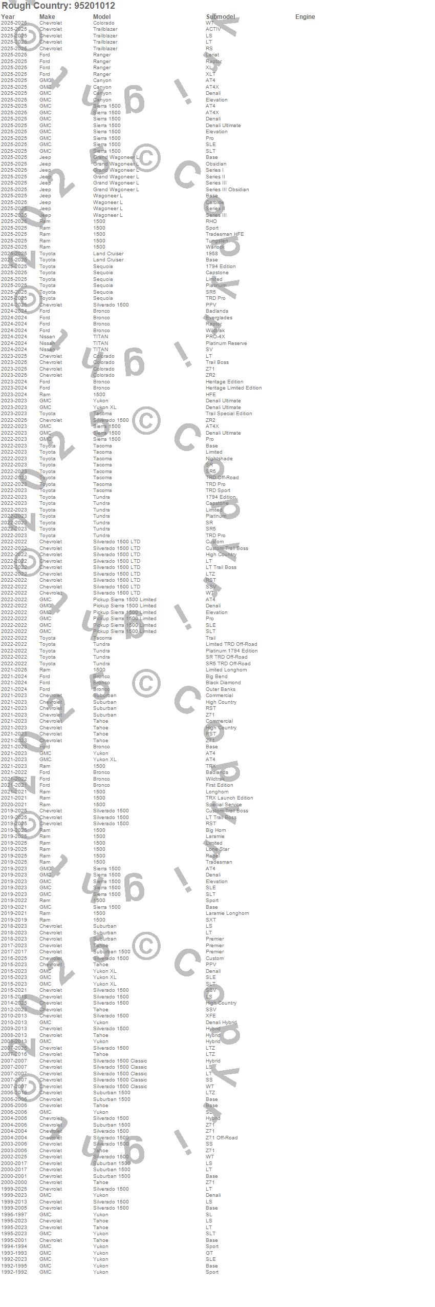 Below is an abbreviated list of applications for the One-Piece Series 95 Wheel.1500, 4Runner, Bronco, Canyon, Colorado, Escalade, Grand Wagoneer L, Land Cruiser, Pickup Sierra 1500 Limited, Ranger, Sequoia, Sierra 1500, Silverado 1500, Silverado 1500 Classic, Silverado 1500 LTD, Suburban, Suburban 1500, Tacoma, Tahoe, TITAN
