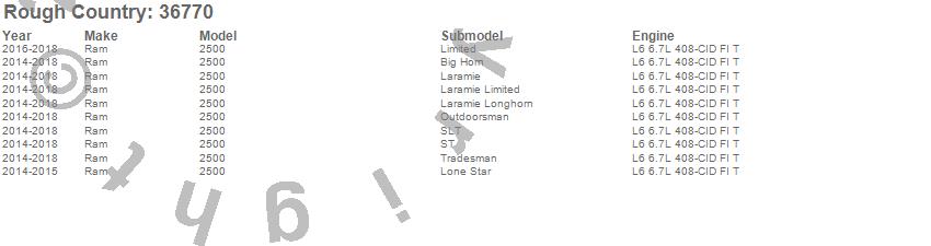 Below is an abbreviated list of applications for the Suspension Lift Kit.2500, Ram, 2018, 2017, 2016, 2015, 2014