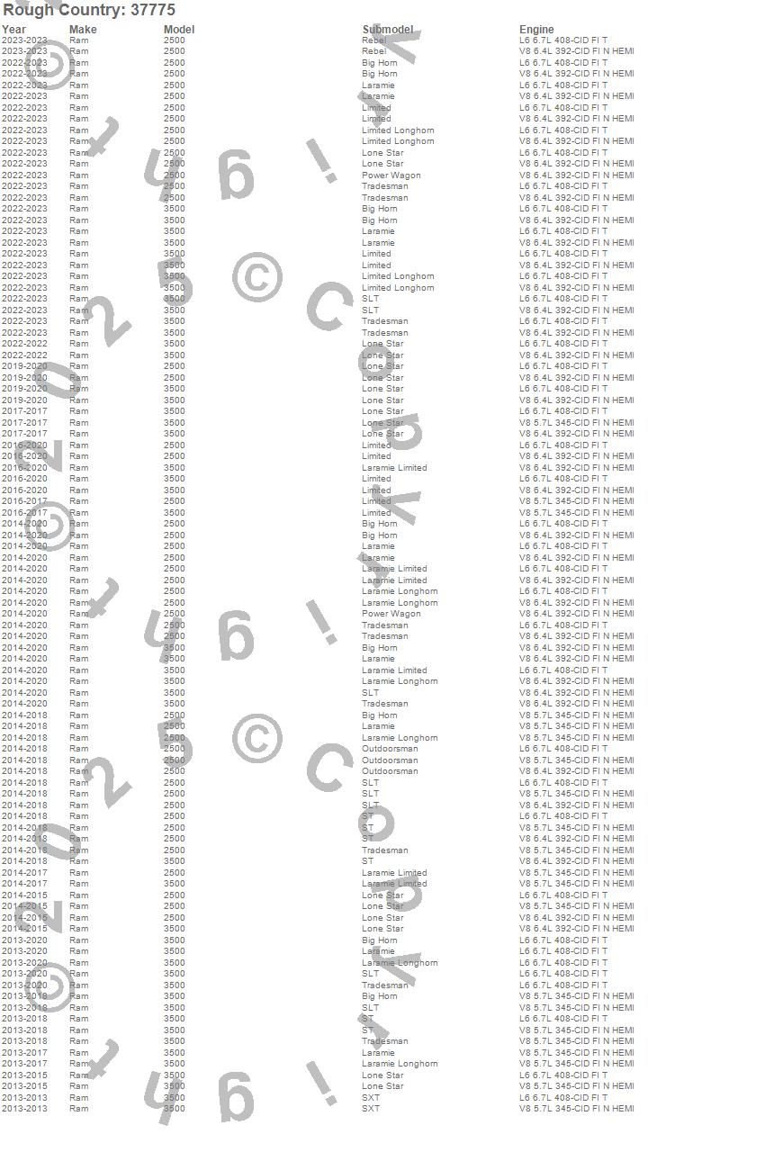 Below is an abbreviated list of applications for the Leveling Kit.2500, 3500, Ram, 2023, 2022, 2020, 2019, 2018, 2017, 2016, 2015, 2014, 2013