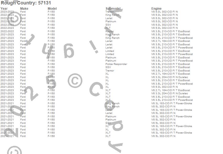 Below is an abbreviated list of applications for the Leveling Kit.F-150, Ford, 2025, 2024, 2023, 2022, 2021