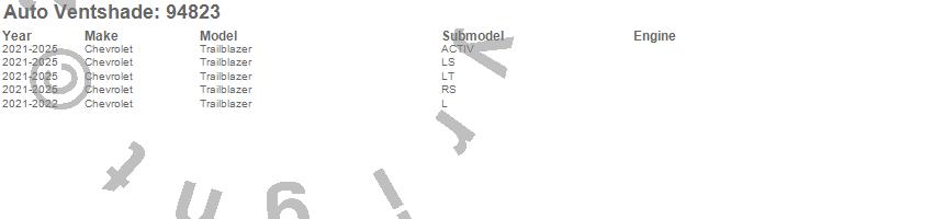 Below is an abbreviated list of applications for the Ventvisor Deflector 4 pc..Trailblazer, Chevrolet, 2026, 2025, 2024, 2023, 2022, 2021