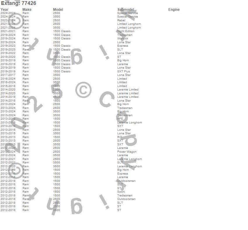 Below is an abbreviated list of applications for the Trifecta e-Series.1500, 1500 Classic, 2500, 3500, Ram, 2024, 2023, 2022, 2021, 2020, 2019, 2018, 2017, 2016, 2015, 2014, 2013, 2012