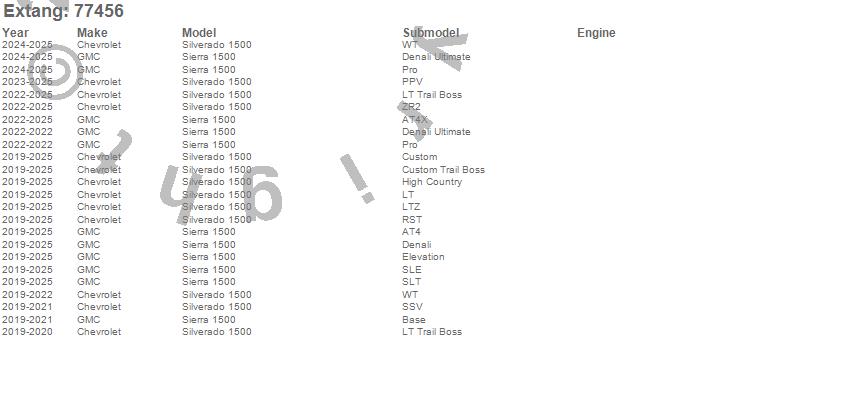 Below is an abbreviated list of applications for the Trifecta e-Series.Sierra 1500, Silverado 1500, Chevrolet, GMC, 2026, 2025, 2024, 2023, 2022, 2021, 2020, 2019