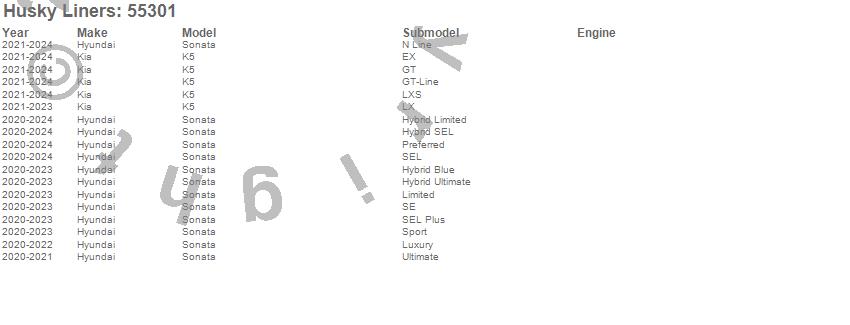 Below is an abbreviated list of applications for the X-act Contour Floor Liner.K5, Sonata, Hyundai, Kia, 2026, 2025, 2024, 2023, 2022, 2021, 2020
