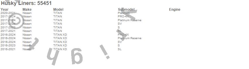 Below is an abbreviated list of applications for the X-act Contour Floor Liner.TITAN, TITAN XD, Nissan, 2024, 2023, 2022, 2021, 2020, 2019, 2018, 2017, 2016