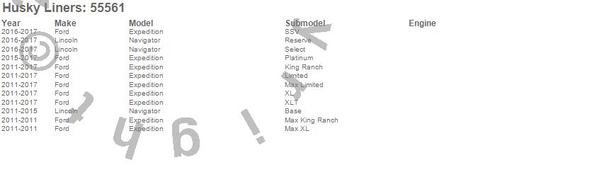 Below is an abbreviated list of applications for the X-act Contour Floor Liner.Expedition, Navigator, Ford, Lincoln, 2017, 2016, 2015, 2014, 2013, 2012, 2011