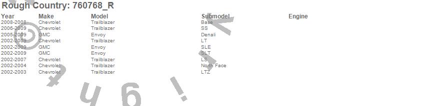 Below is an abbreviated list of applications for the V2 Shock Absorbers.Envoy, Trailblazer, Chevrolet, GMC, 2009, 2008, 2007, 2006, 2005, 2004, 2003, 2002