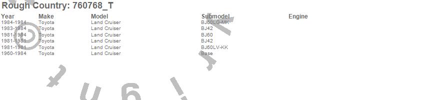 Below is an abbreviated list of applications for the V2 Shock Absorbers.Land Cruiser, Toyota, 1984, 1983, 1982, 1981, 1980, 1979, 1978, 1977, 1976, 1975, 1974, 1973, 1972, 1971, 1970, 1969, 1968, 1967