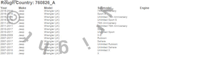 Brand: Rough CountryPart Number: 760826_AShock Absorber Type: Front - Pair - 0.5-2.5 in.UPC: 843030174392