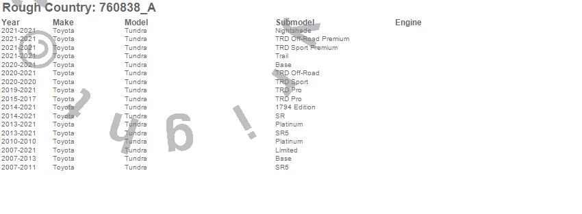 Brand: Rough CountryPart Number: 760838_AShock Absorber Type: Rear - 0-3.5 in.UPC: 843030109585