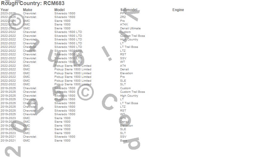 Brand: Rough CountryPart Number: RCM683Truck Bed Mat Type: w/RC LogoUPC: 843030176068