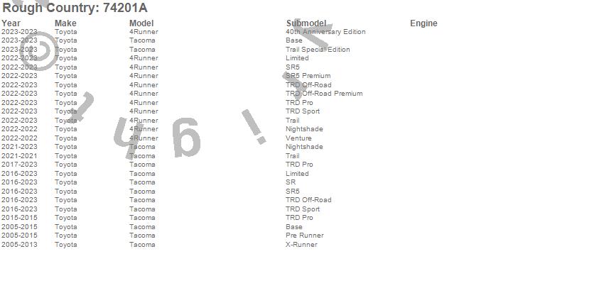 Below is an abbreviated list of applications for the Control Arm.4Runner, Tacoma, Toyota, 2024, 2023, 2022, 2021, 2020, 2019, 2018, 2017, 2016, 2015, 2014, 2013, 2012, 2011, 2010, 2009, 2008