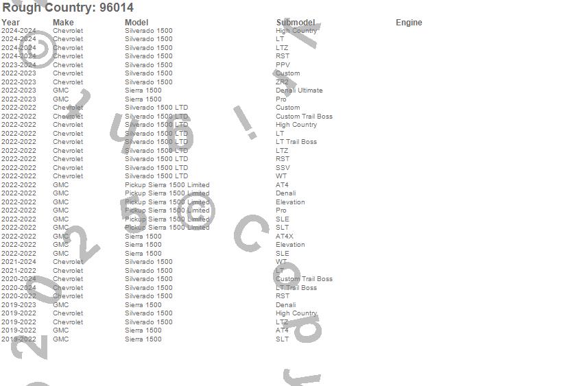 Brand: Rough CountryPart Number: 96014Exhaust System Kit Type: Dual Cat-Back - w/Black TipsUPC: 843030199067