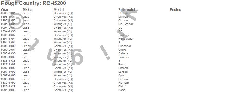 Brand: Rough CountryPart Number: RCH5200Head Light Type: 5X7 in.UPC: 843030191979