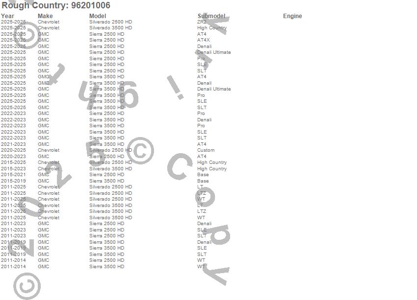 Below is an abbreviated list of applications for the One-Piece Series 96 Wheel.Sierra 2500 HD, Sierra 3500 HD, Silverado 2500 HD, Silverado 3500 HD, Chevrolet, GMC, 2025, 2024, 2023, 2022, 2021, 2020, 2019, 2018, 2017, 2016, 2015, 2014, 2013, 2012